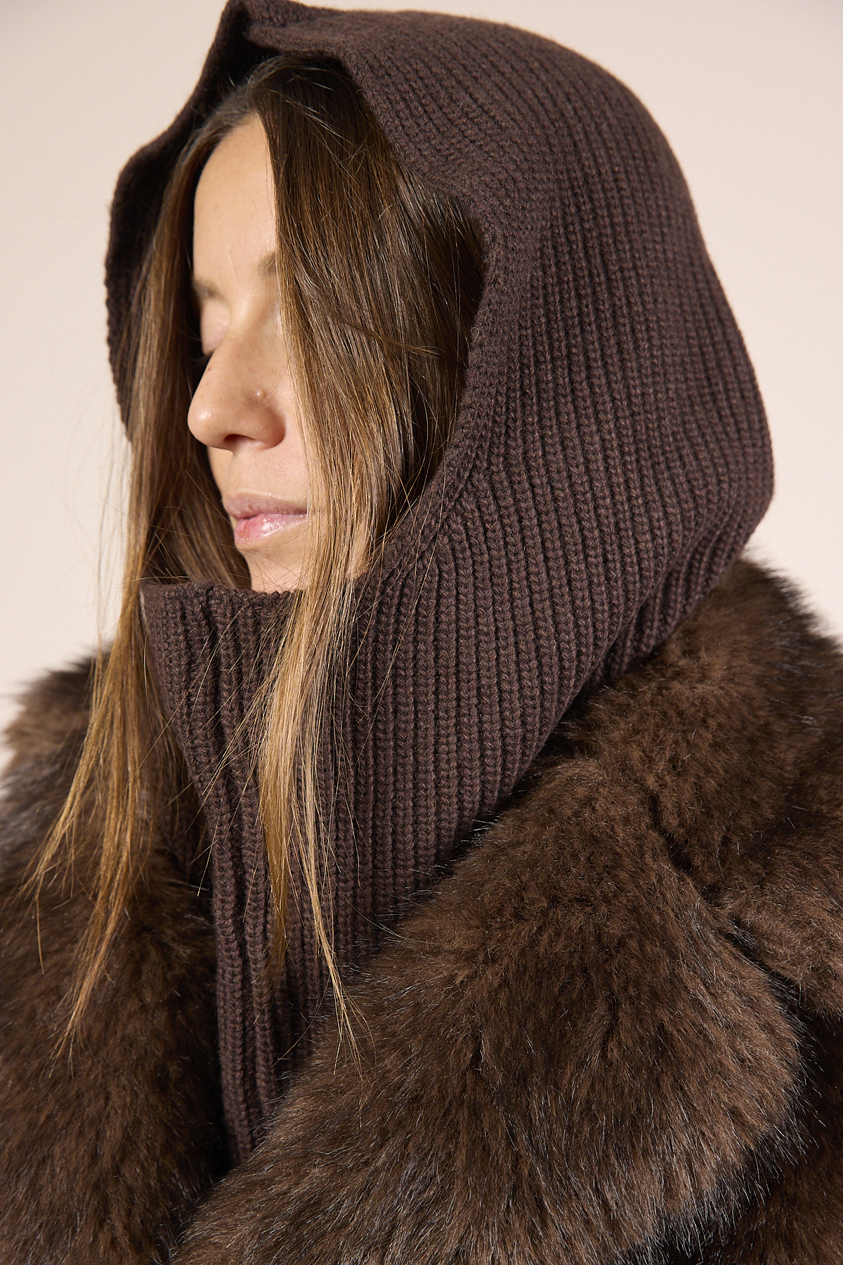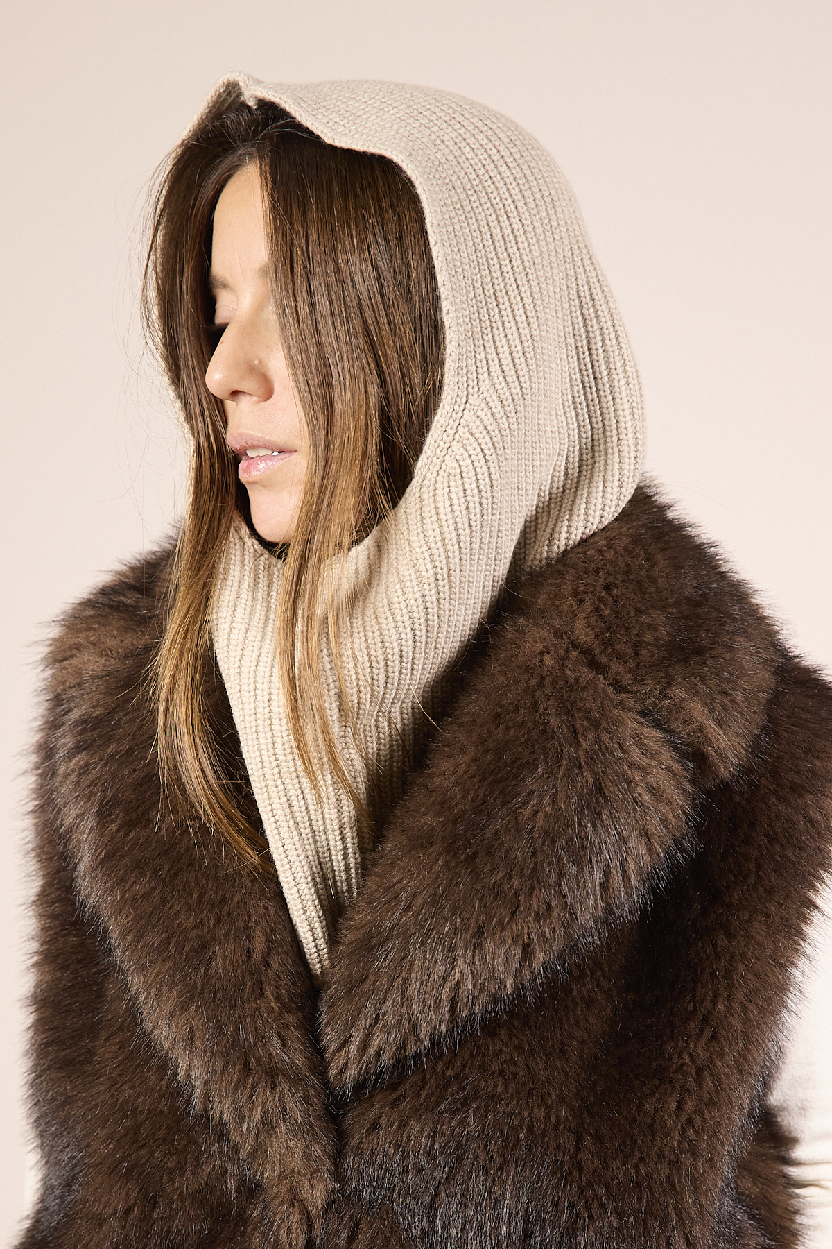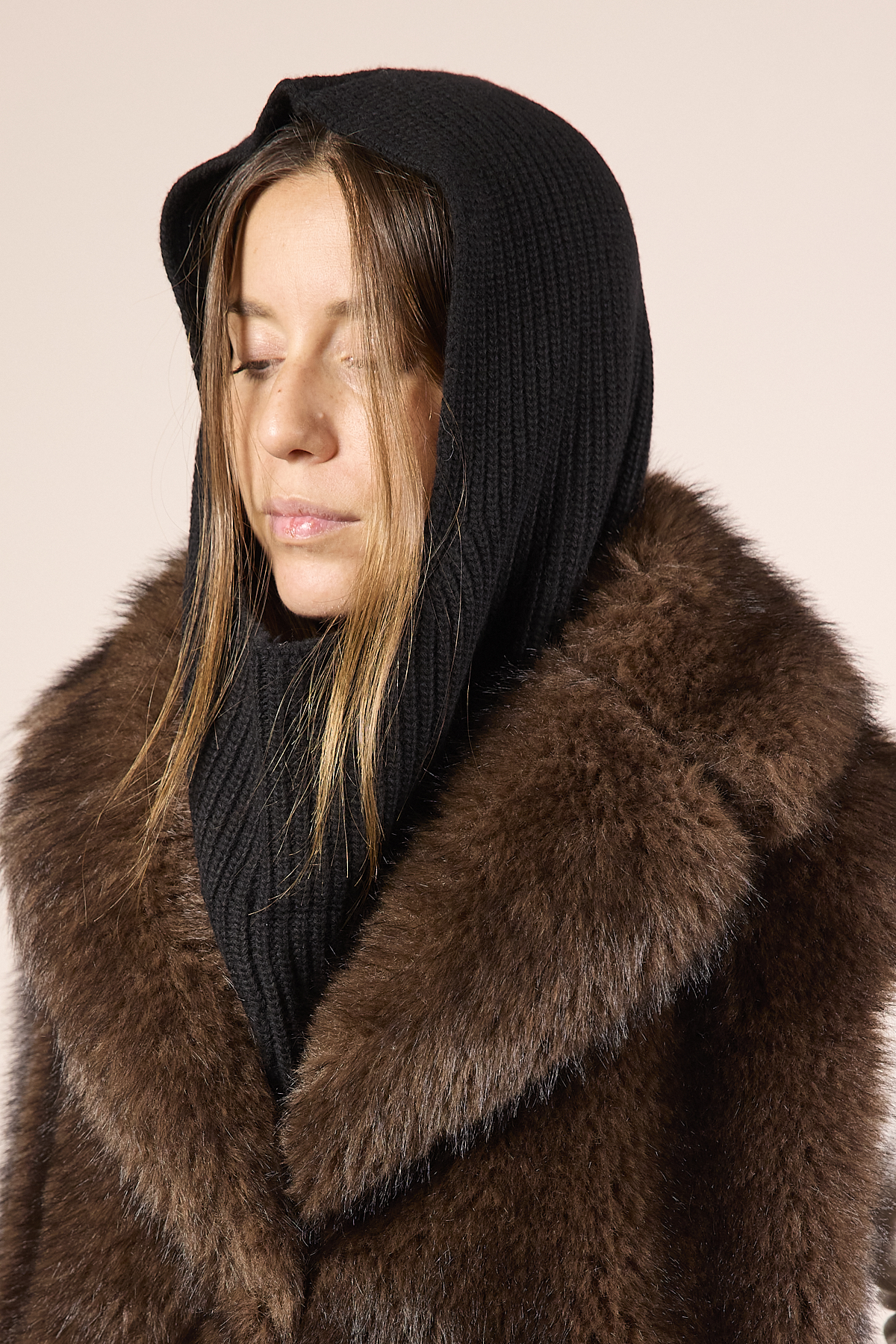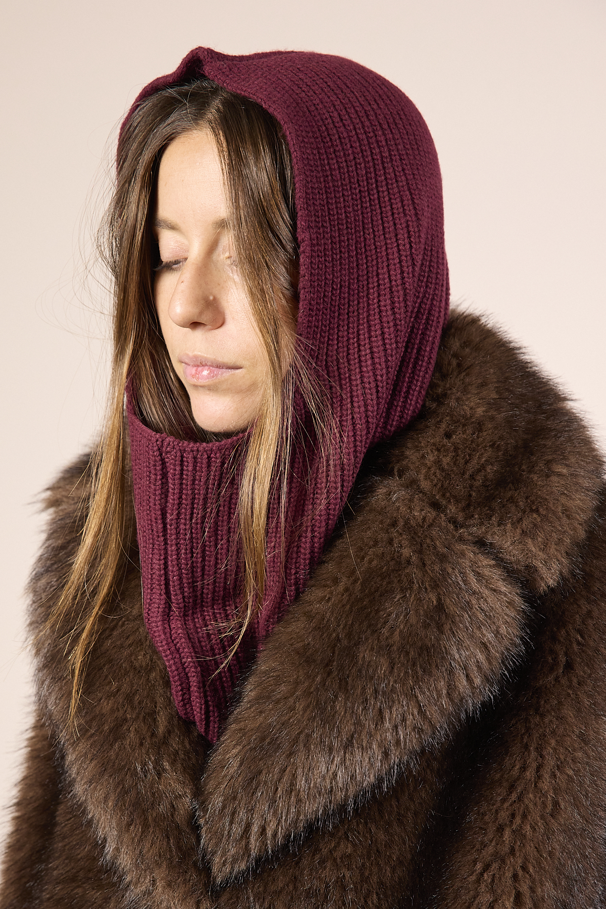 Balaclava in maglia in misto lana e cashmere. 40% Viscosa, 30% Poliammide, 25% Lana, 5% Cashmere