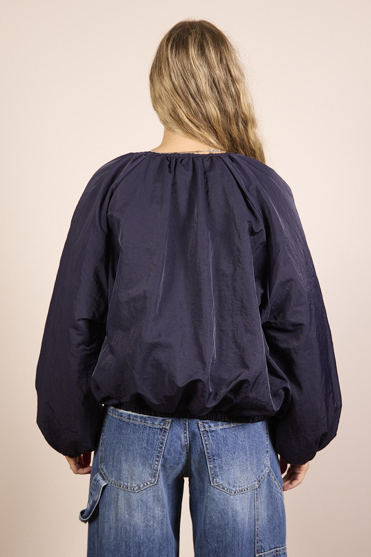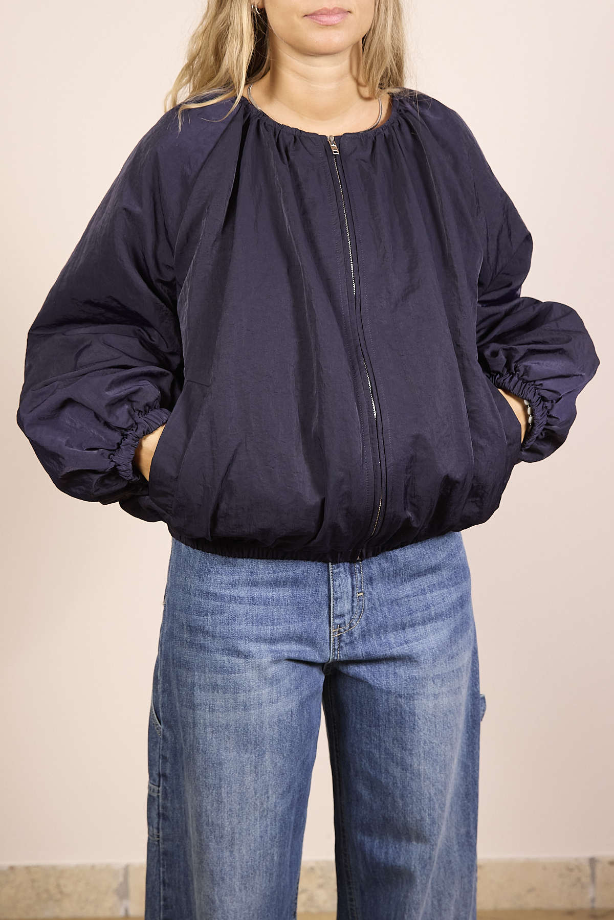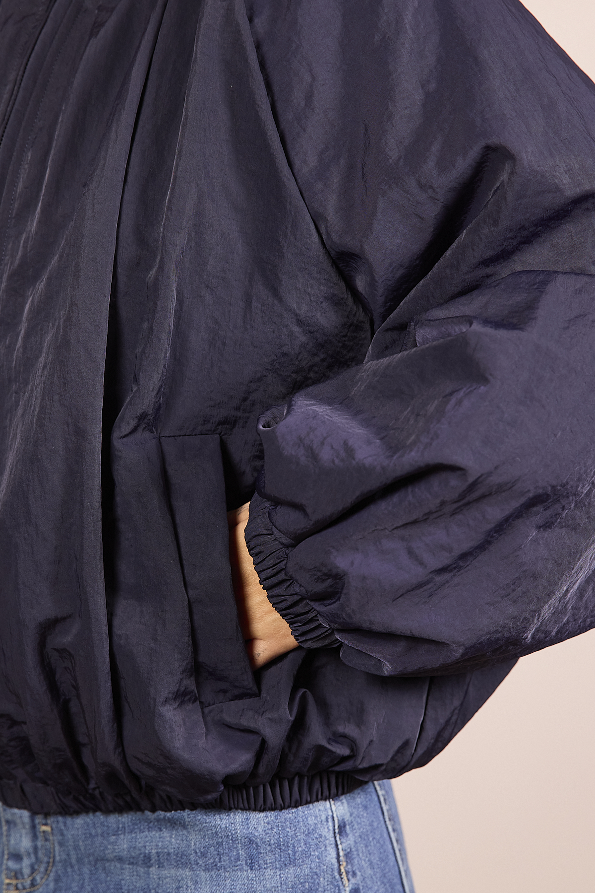 Bomber imbottito con elastico in vita, chiusura con zip.
