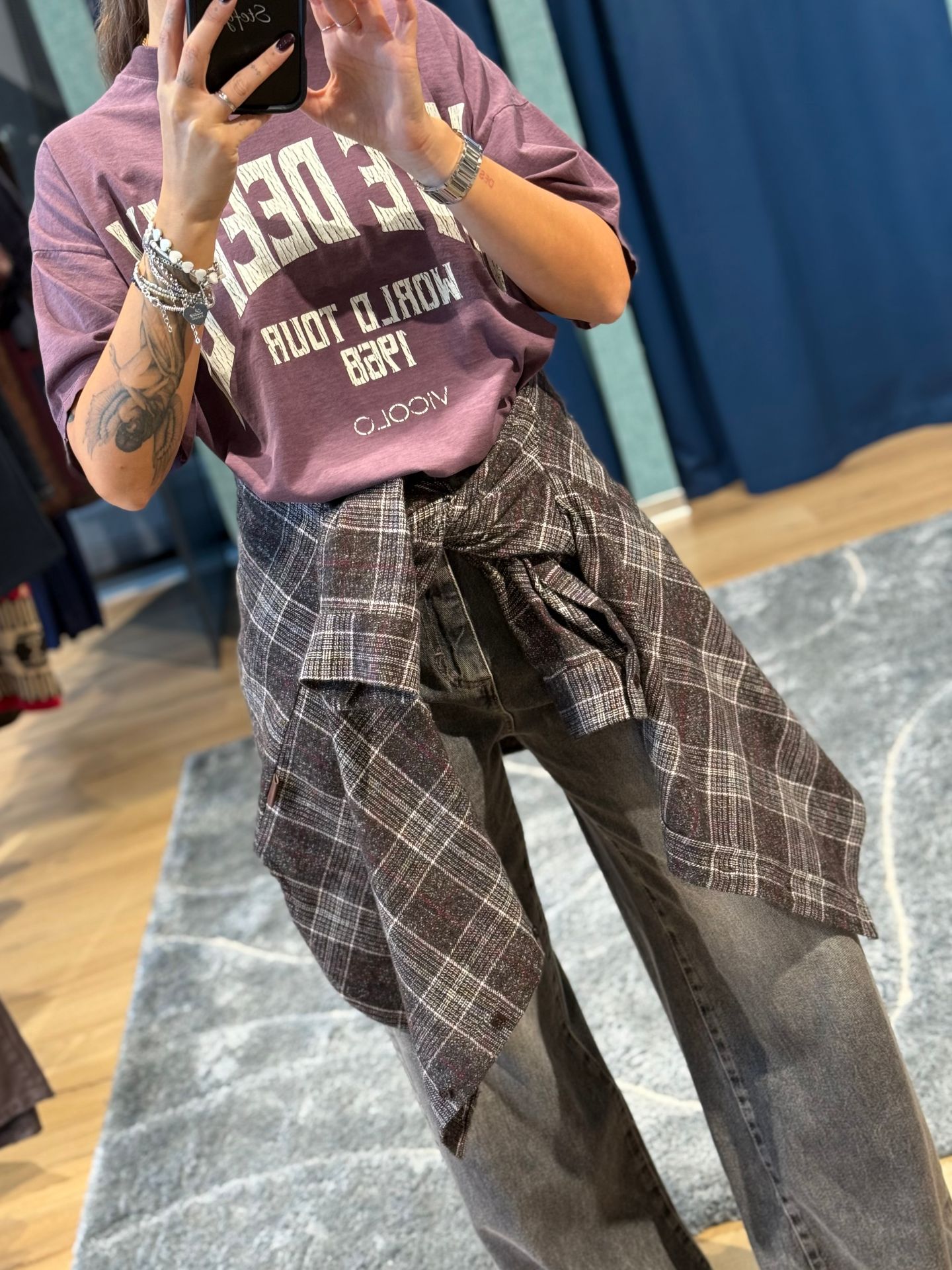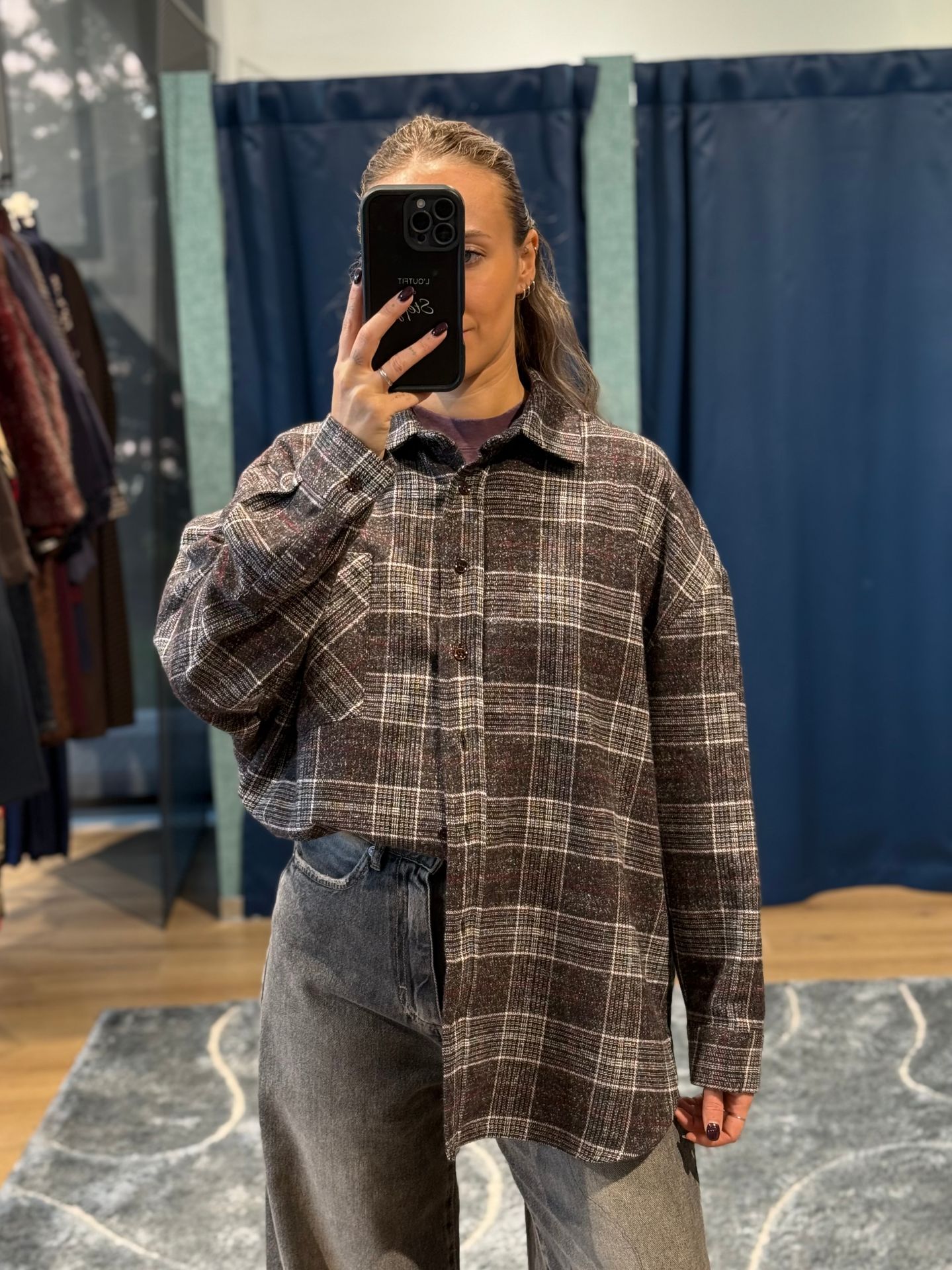 Camicia a quadri sui toni del marrone, nero e bordeaux. 72% Cotone 18% Poliestere 10% Viscosa