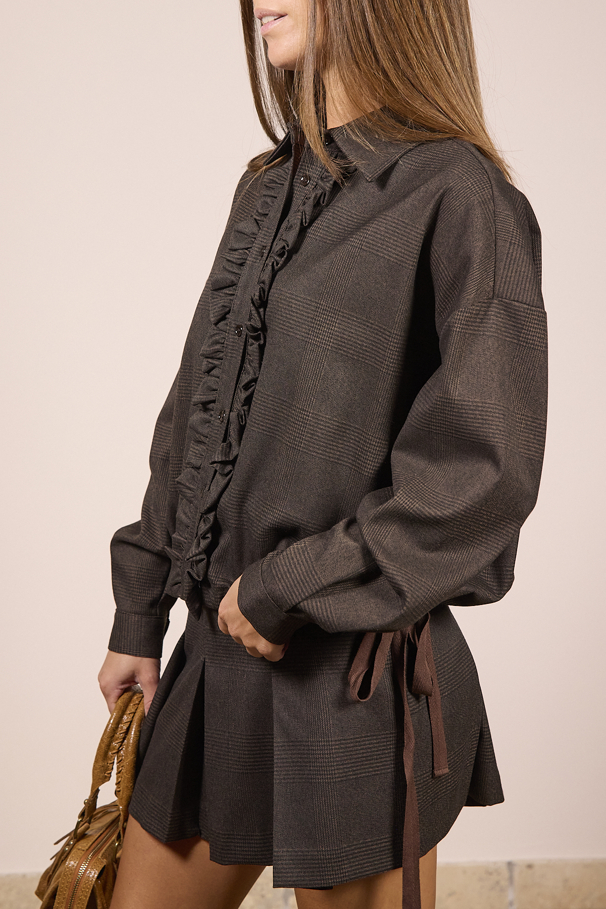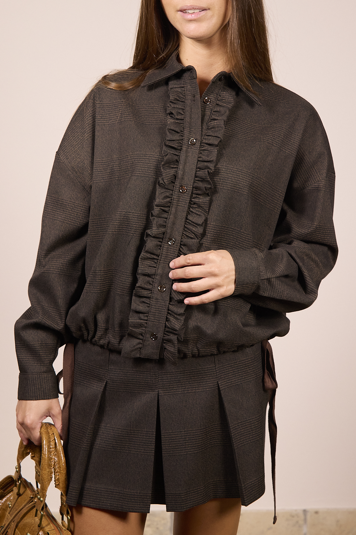 Camicia corta check con rouges lungo l'abbottonatura e coulisse. 79% poliestere 19% viscosa 2% elastan