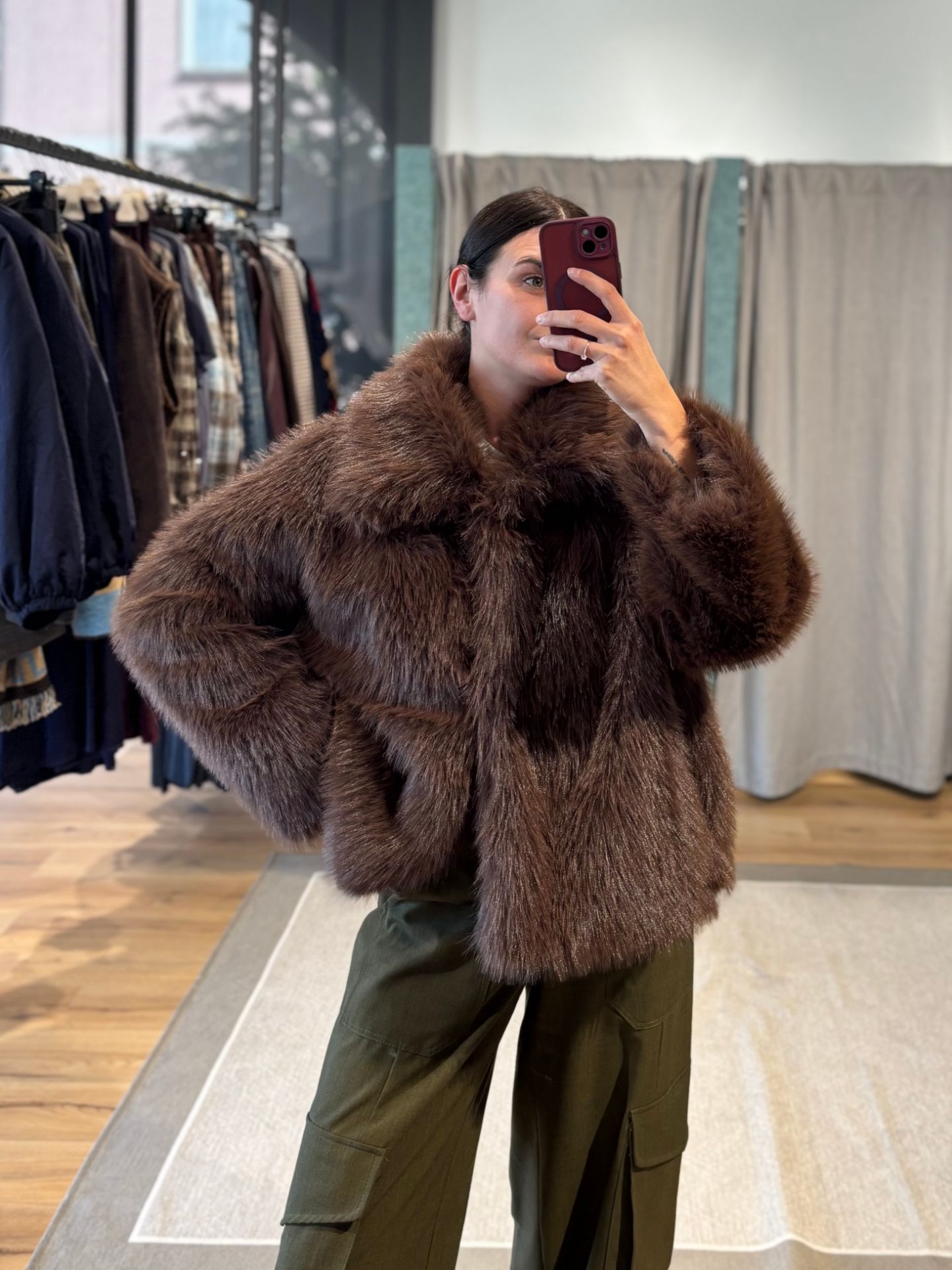 Ecopelliccia modello Bear, marrrone. Vestibilità morbida. 100% poliestere