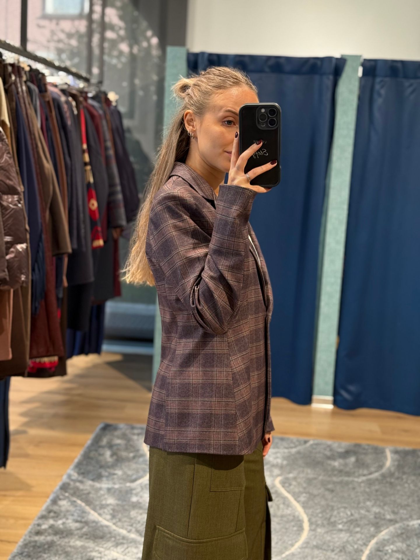 Giacca a quadri fit sfiancato. Chiusura un bottone.