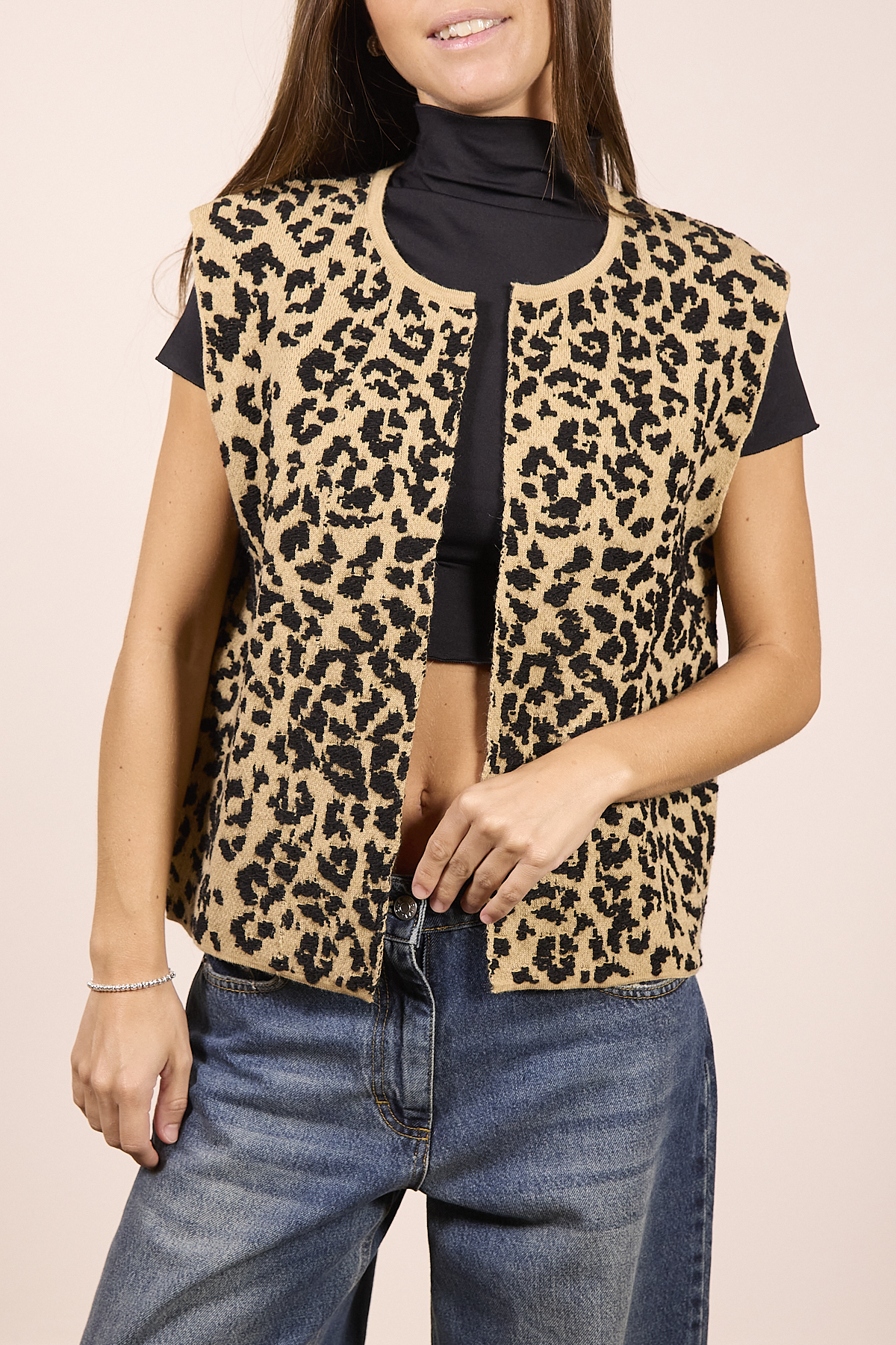 Gilet in maglia in fantasia maculata. 75% Acrilico 10% Viscosa 10% Lana 5% Alpaca
