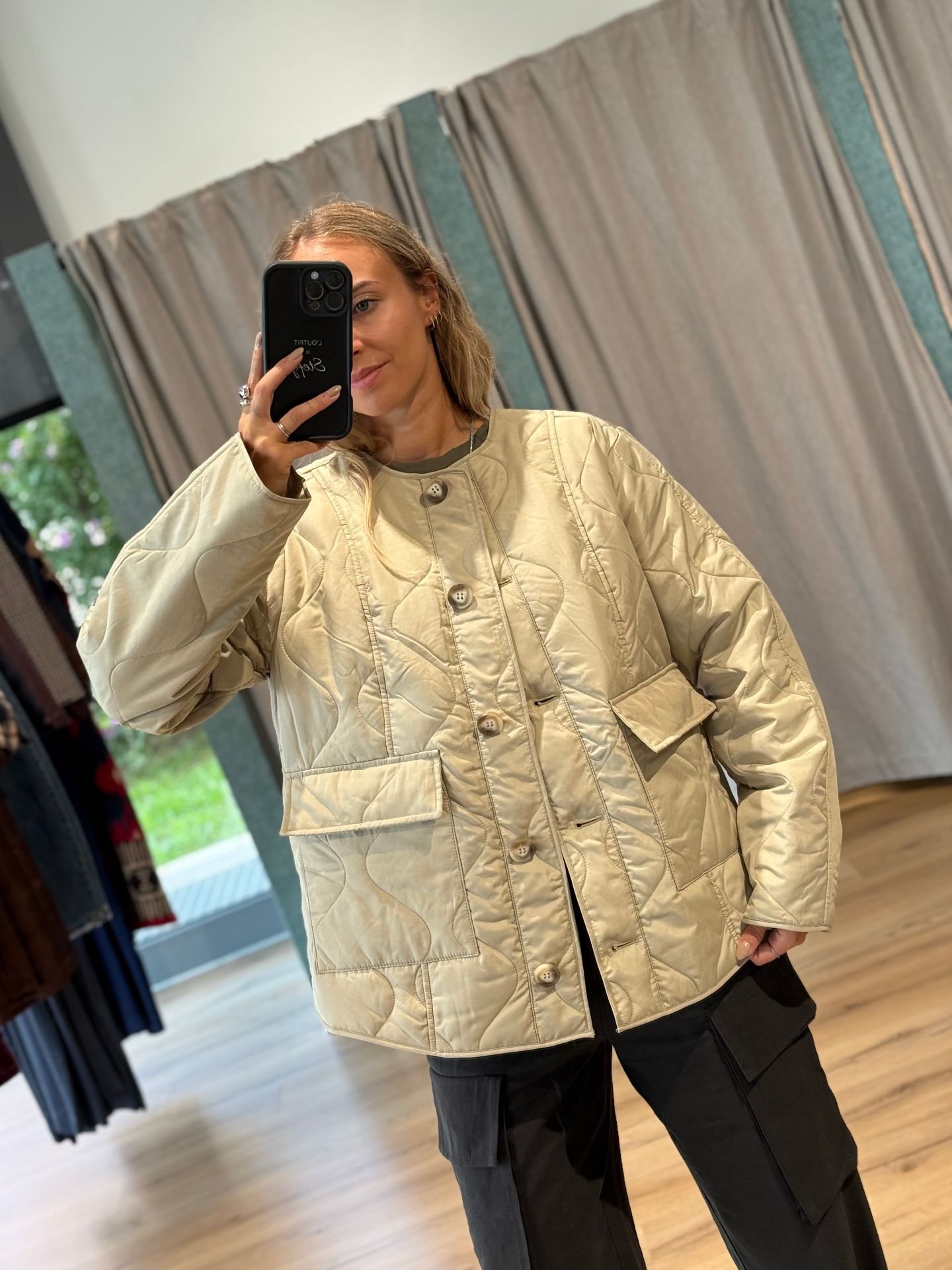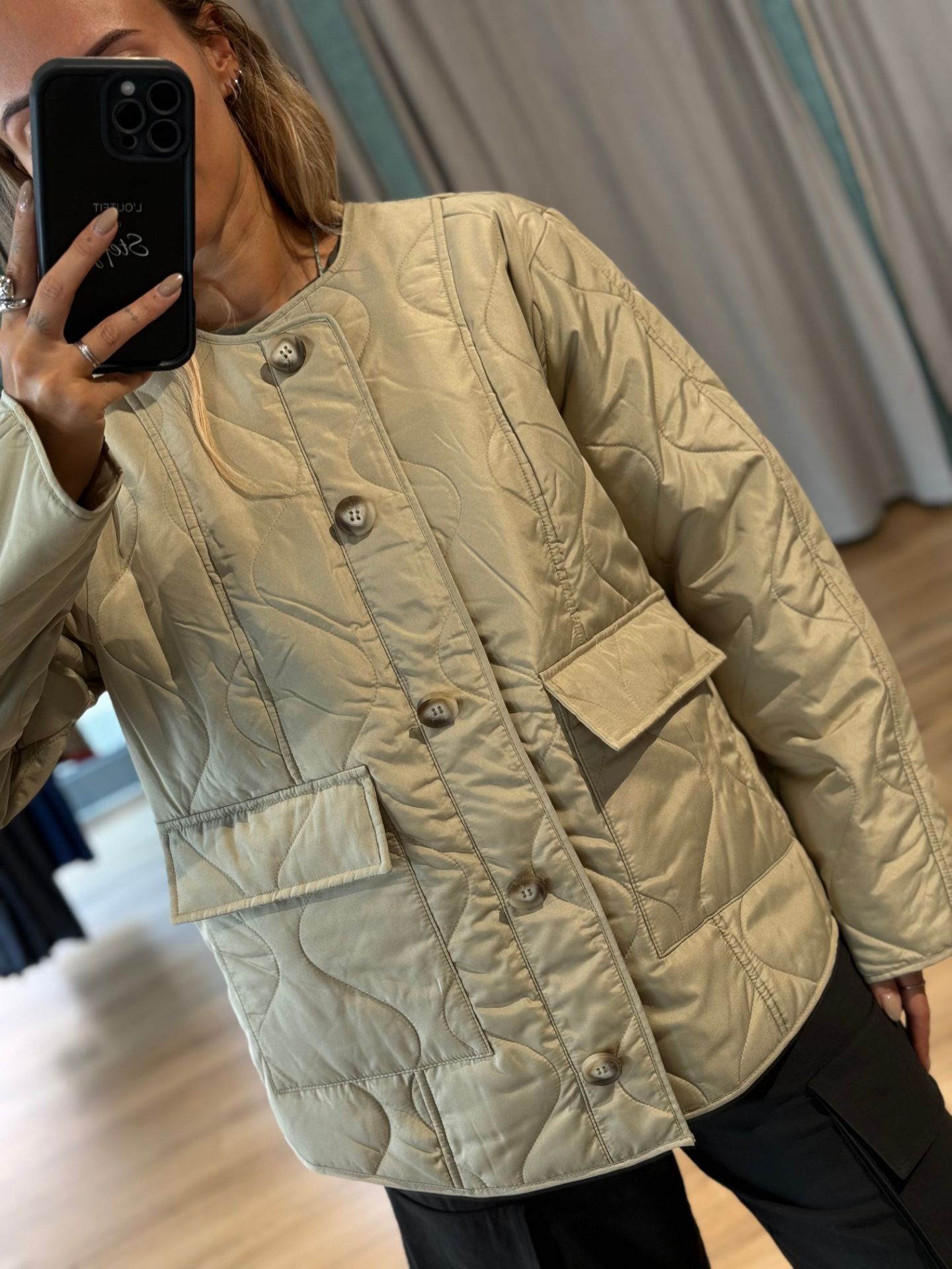 Giacca trapuntata, chiusura con bottoni, tasche frontali. Esterno: 100% Poliestere; Imbottitura: 100% Poliestere riciclato