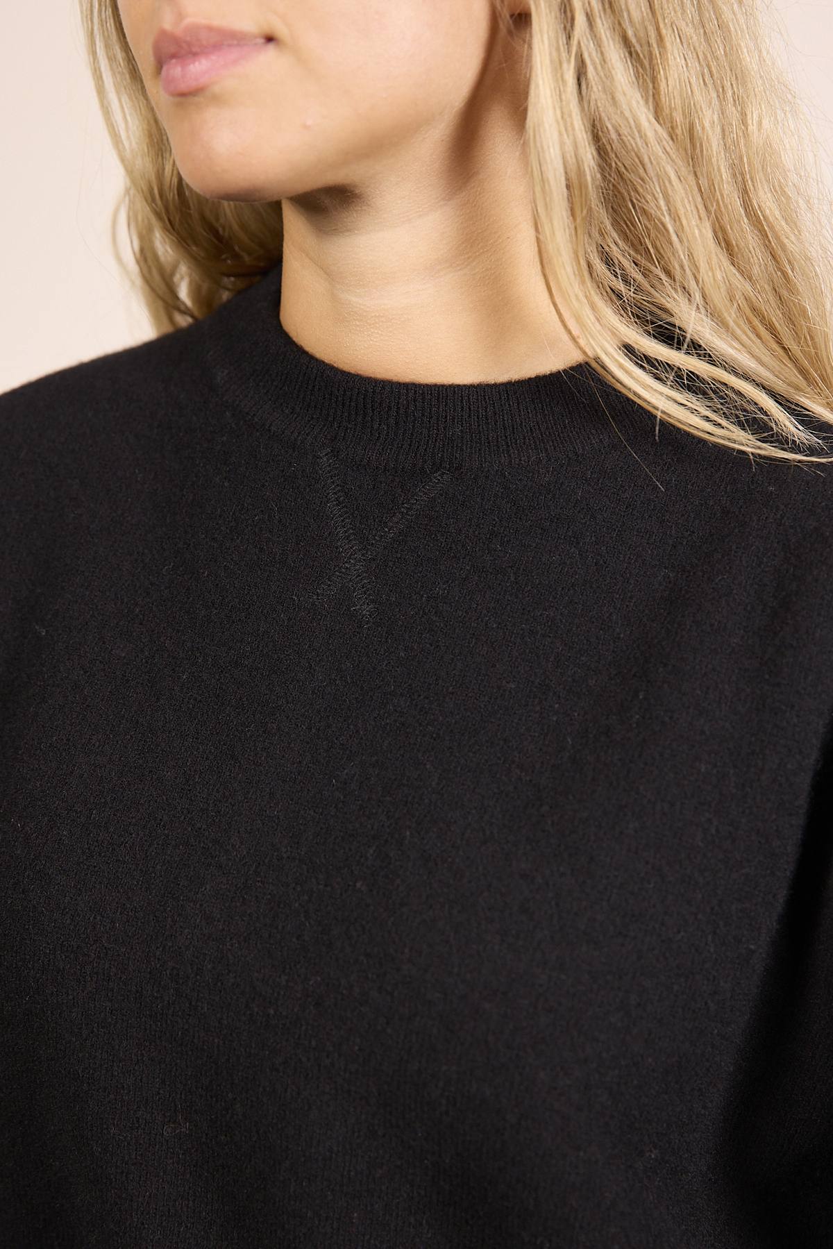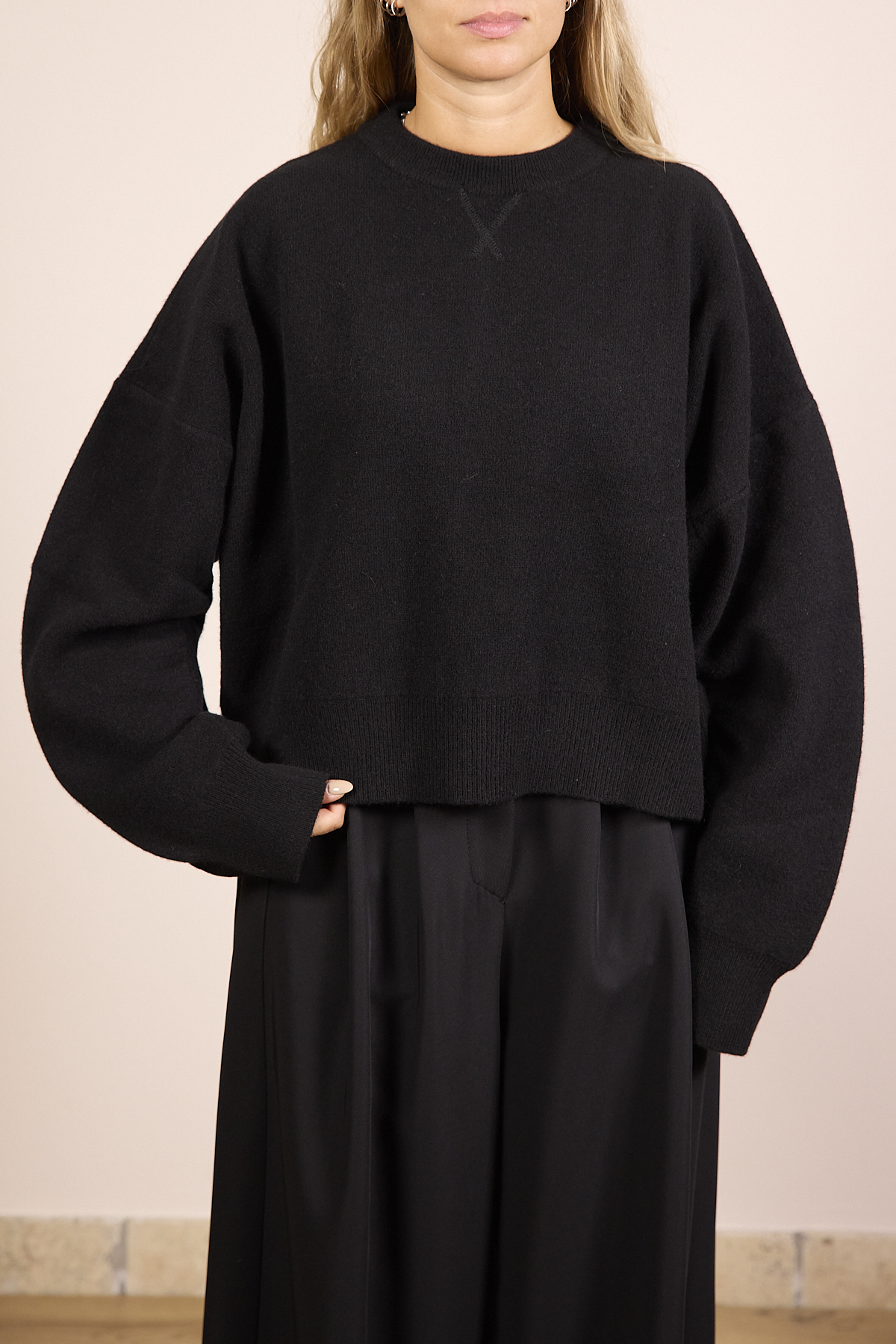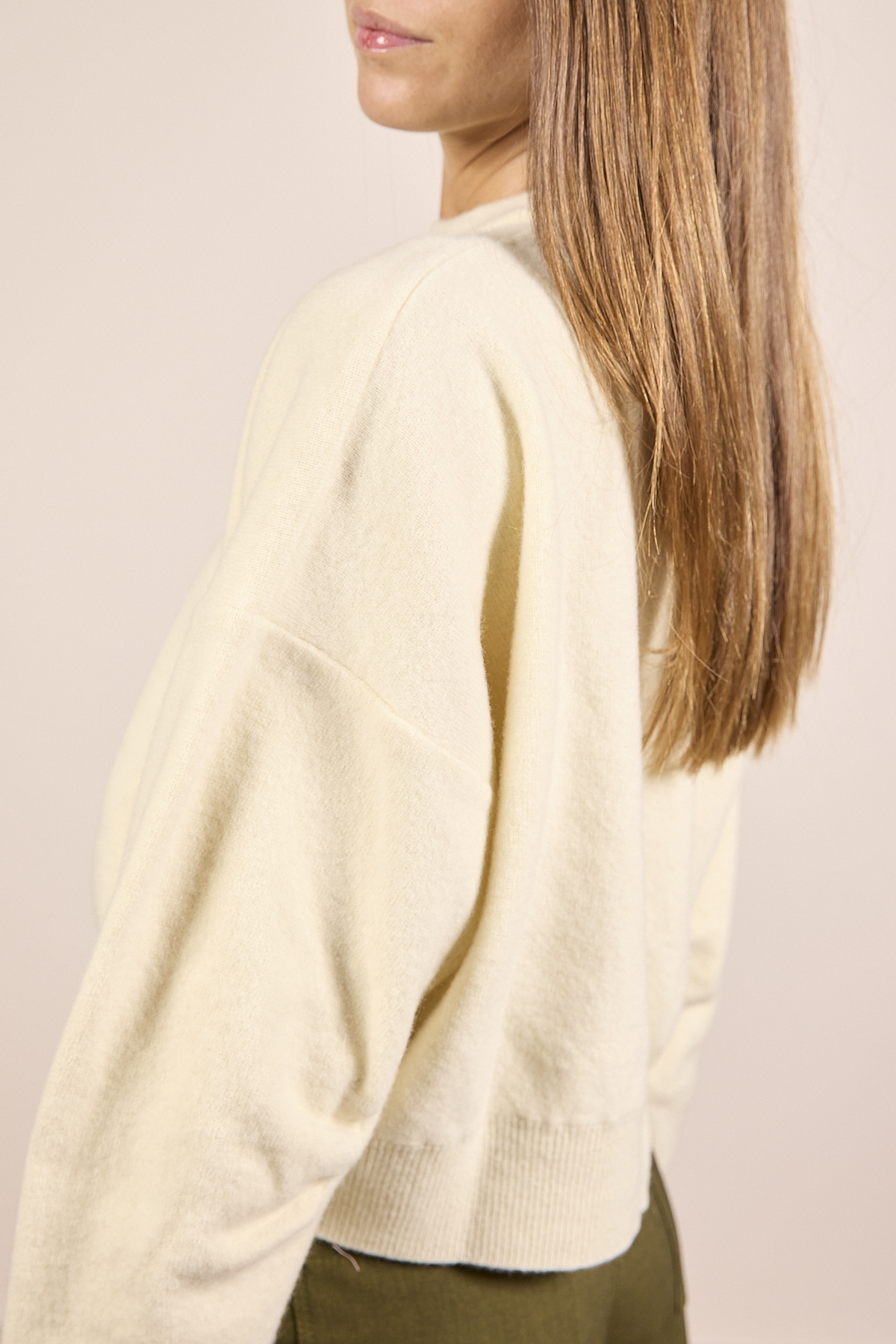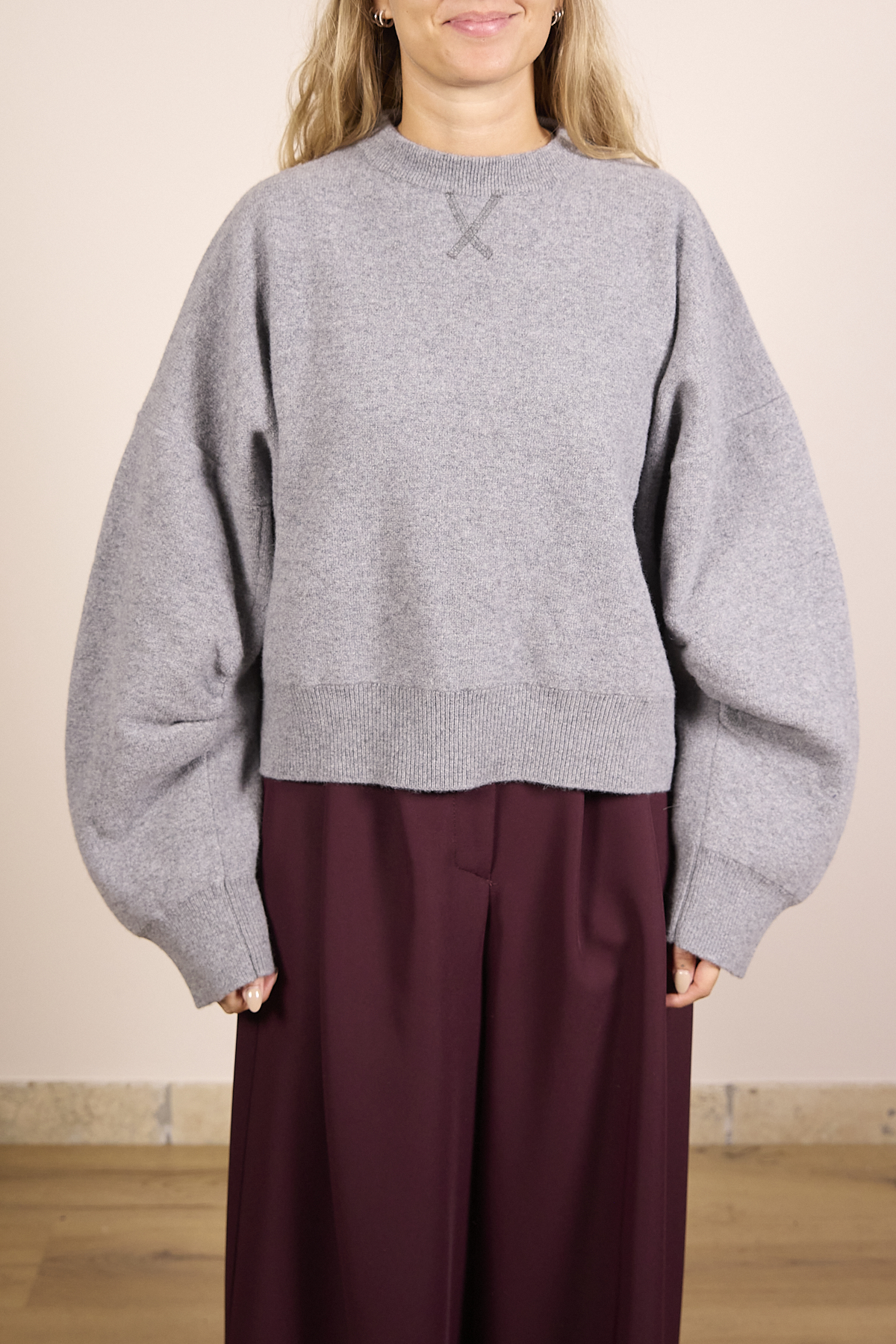 Maglione girocollo a maniche lunghe in 100% lana con dettaglio arricciato sulla manica.