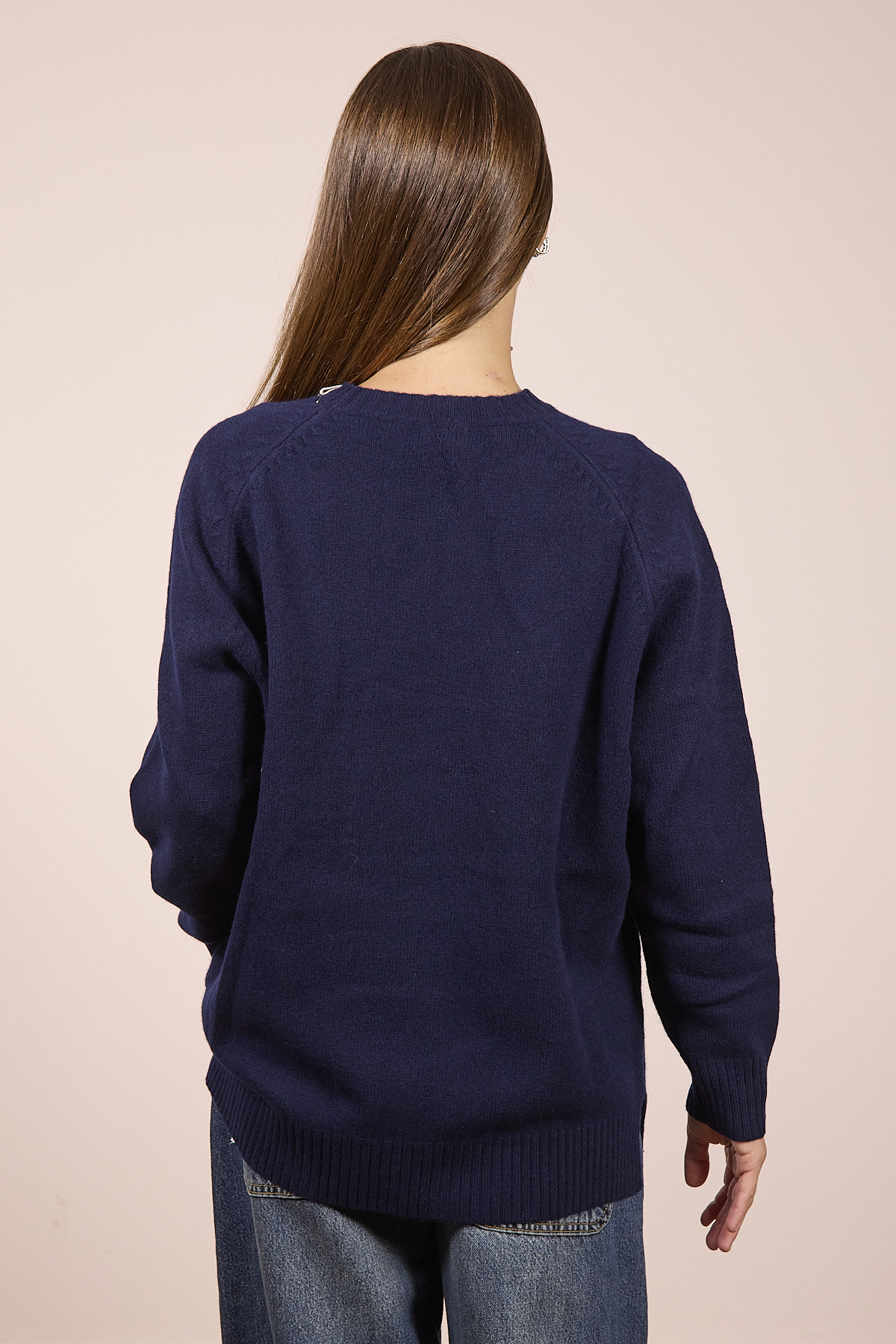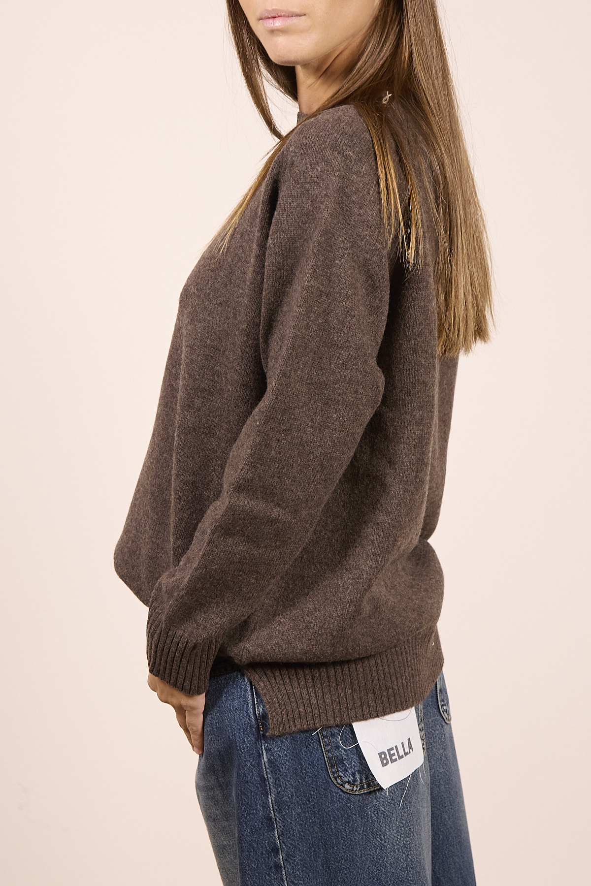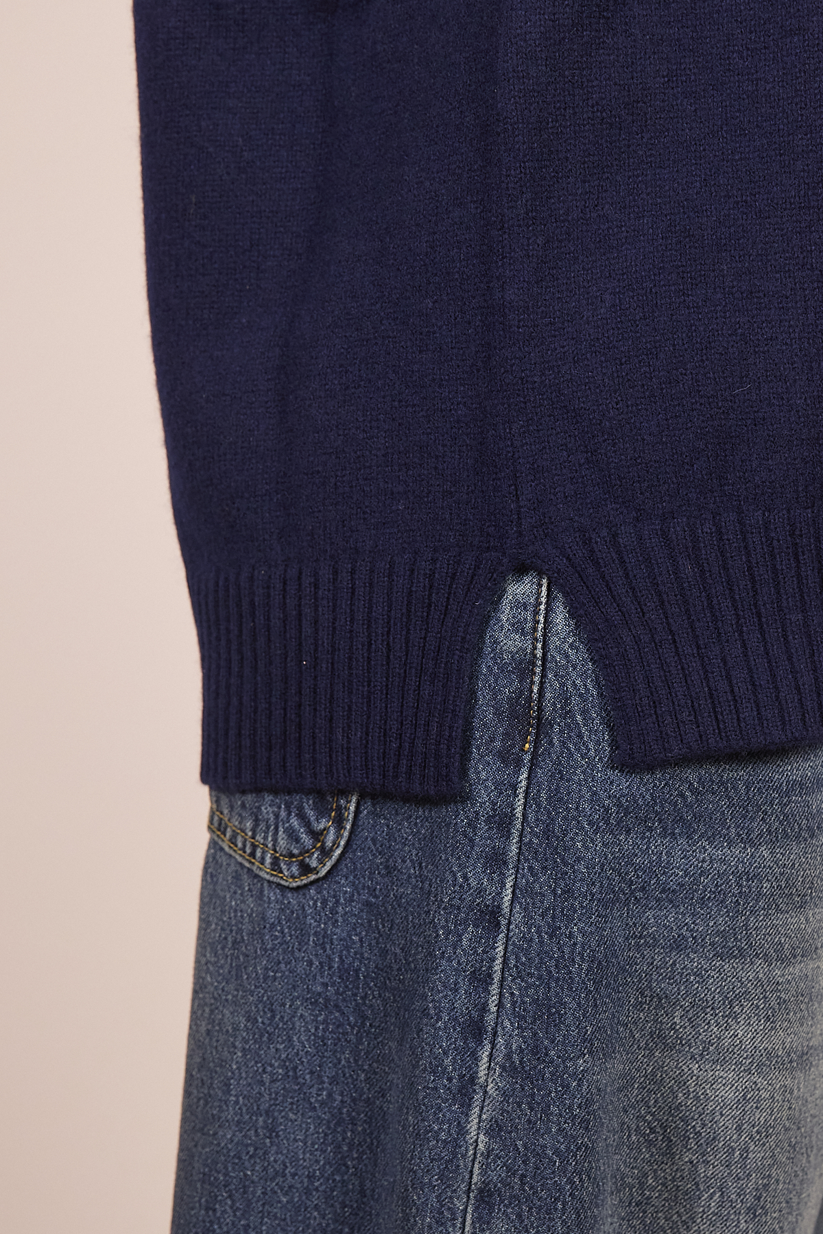 Maglione girocollo in 100% Lana con spacchetti laterali.