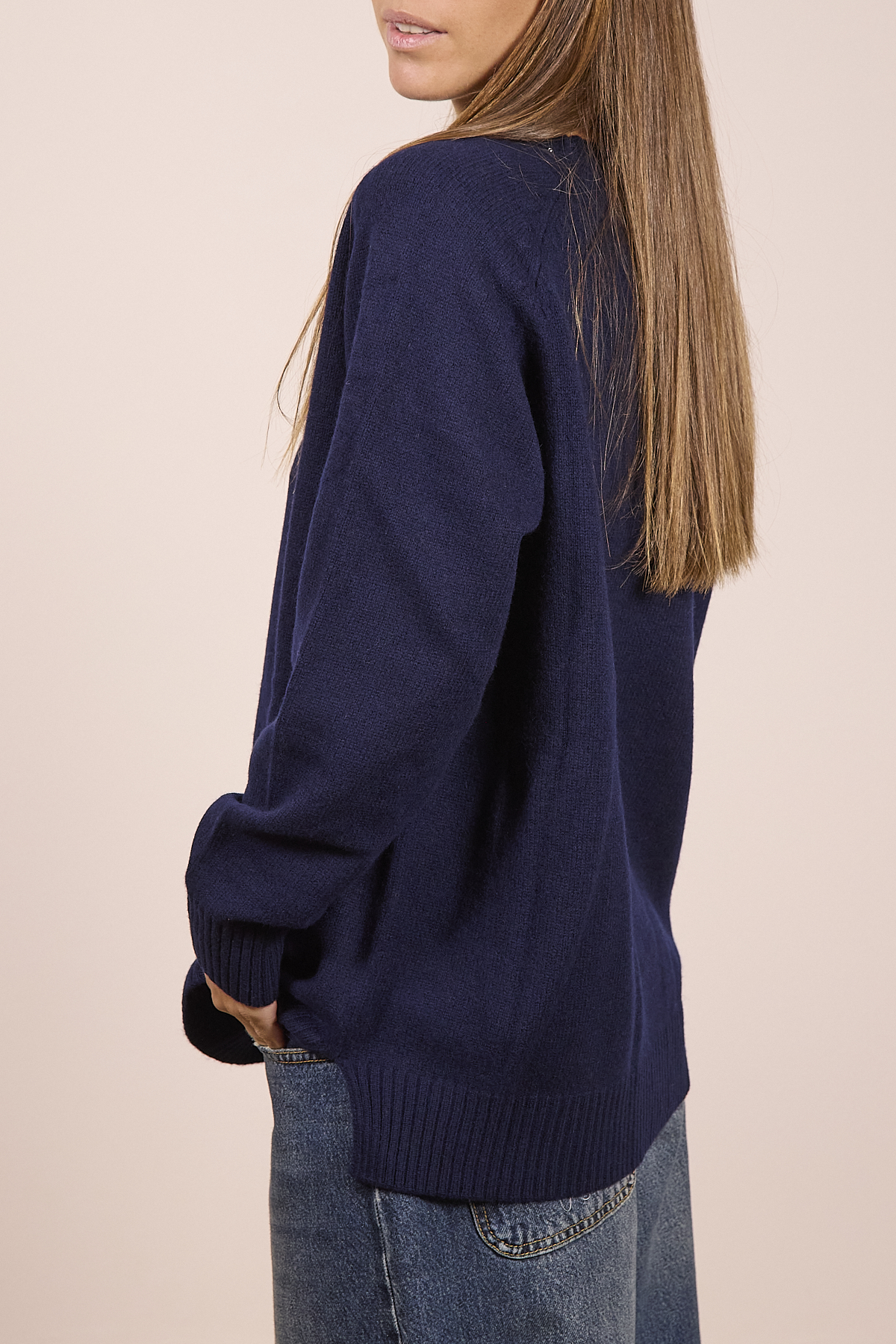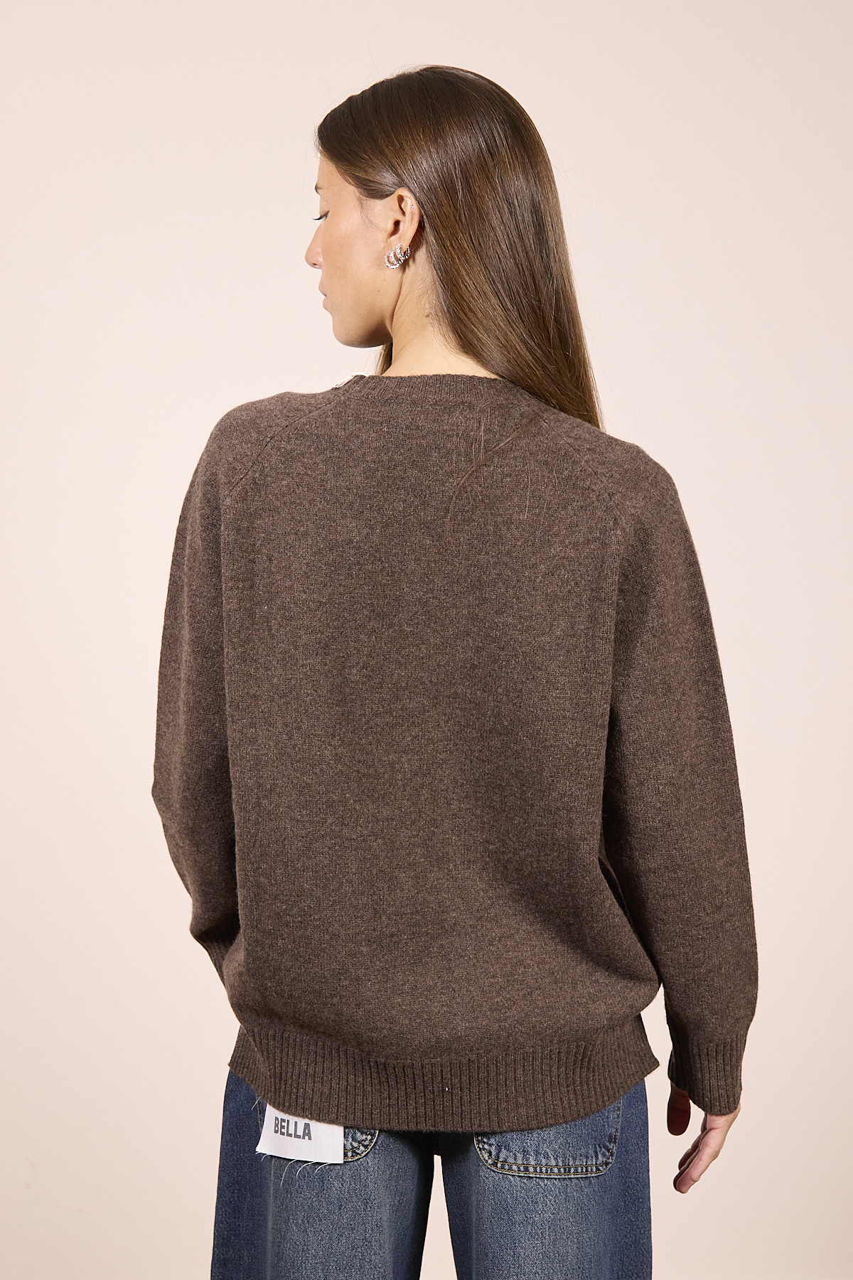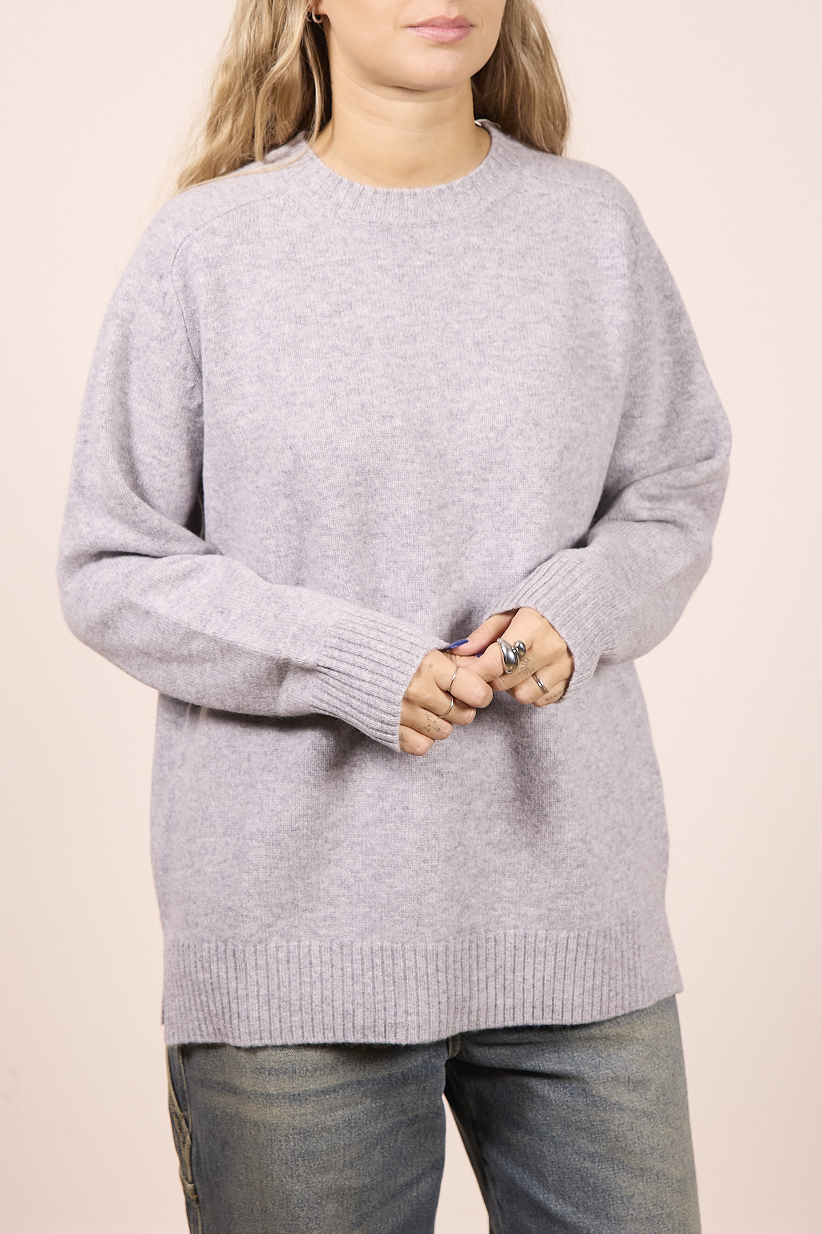 Maglione girocollo in 100% Lana con spacchetti laterali.