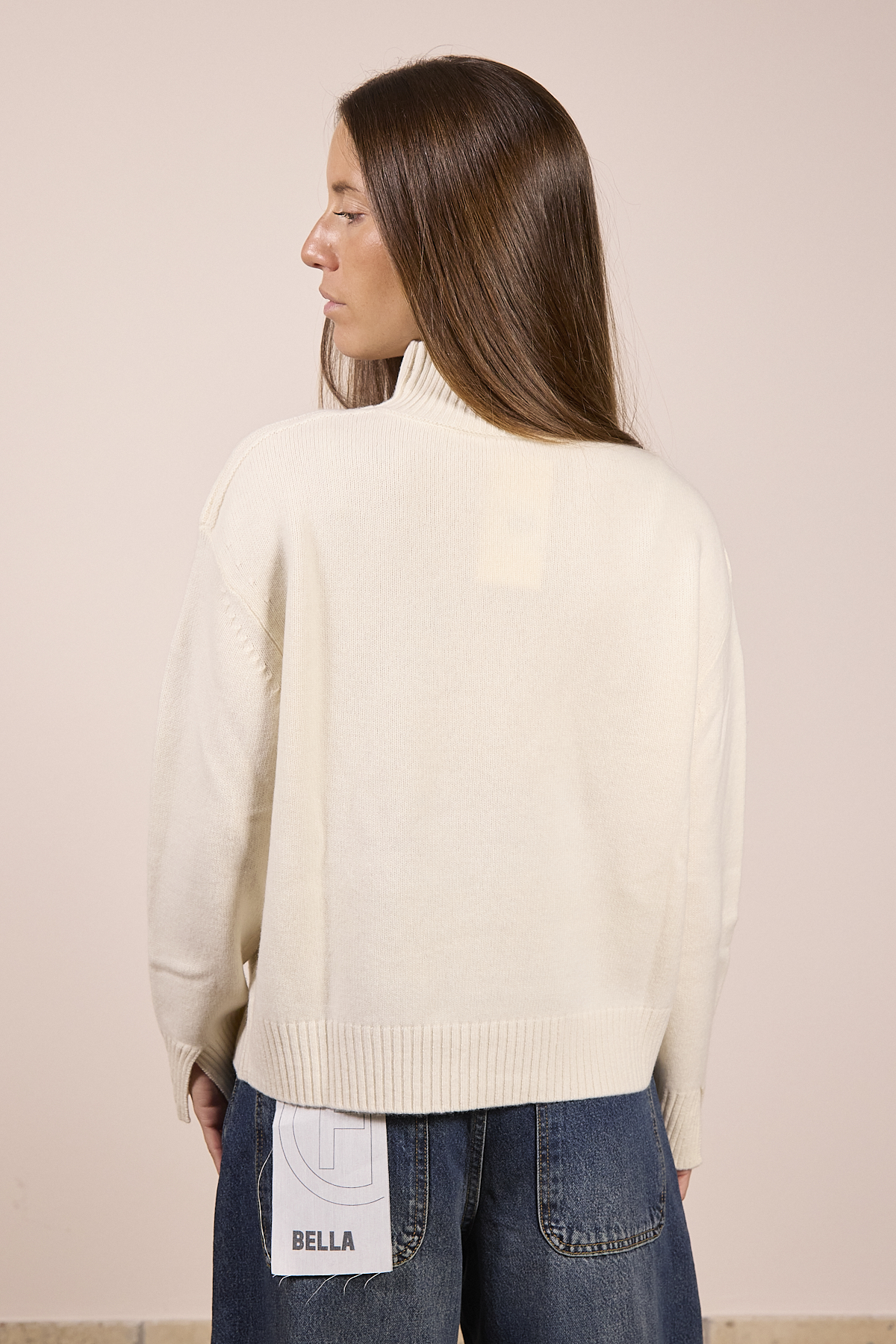 Maglione in 100% lana con collo a lupetto, modello a scatoletta.