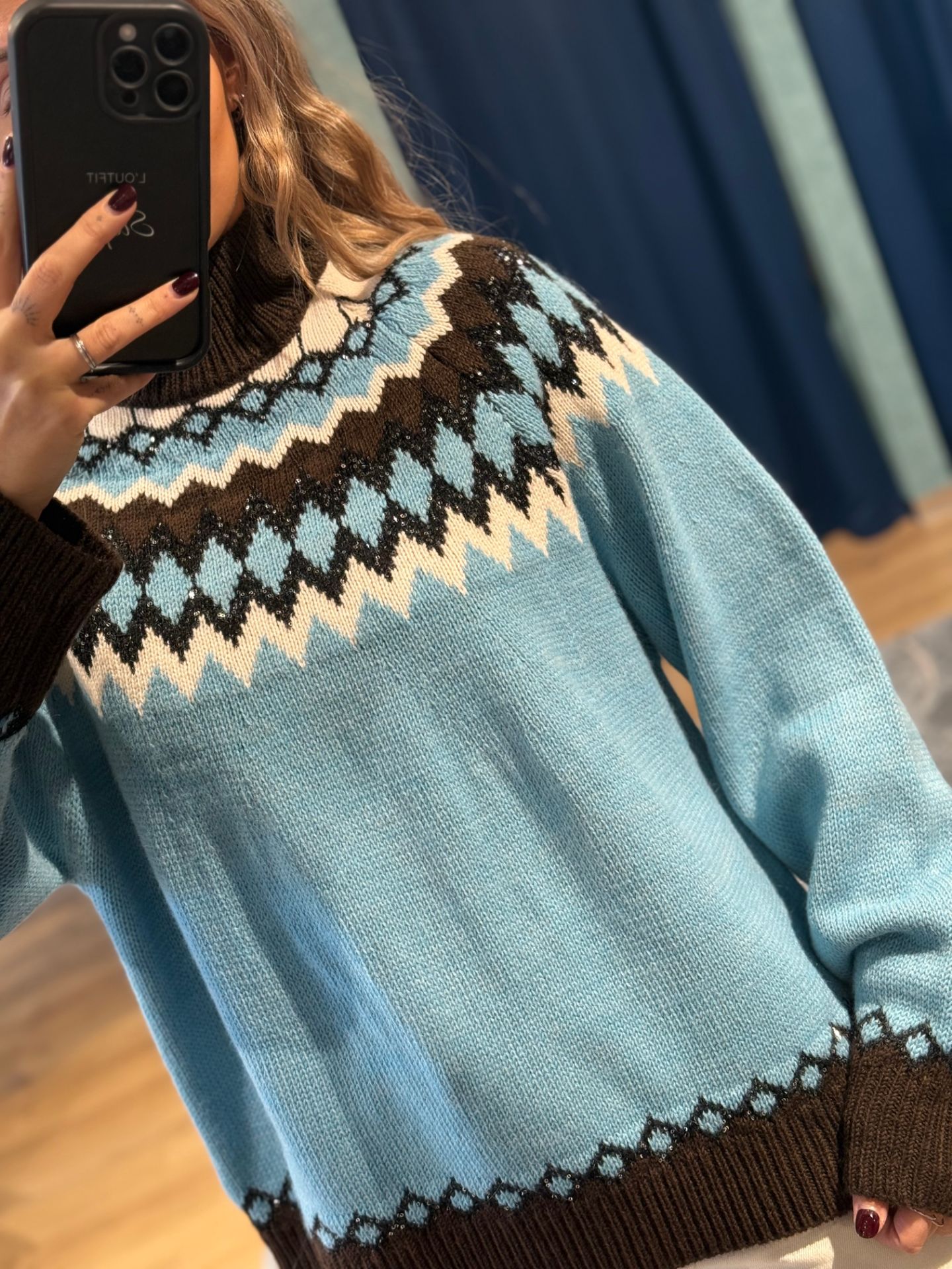 Maglione con fantasia a rombi e dettagli micro paillettes.
