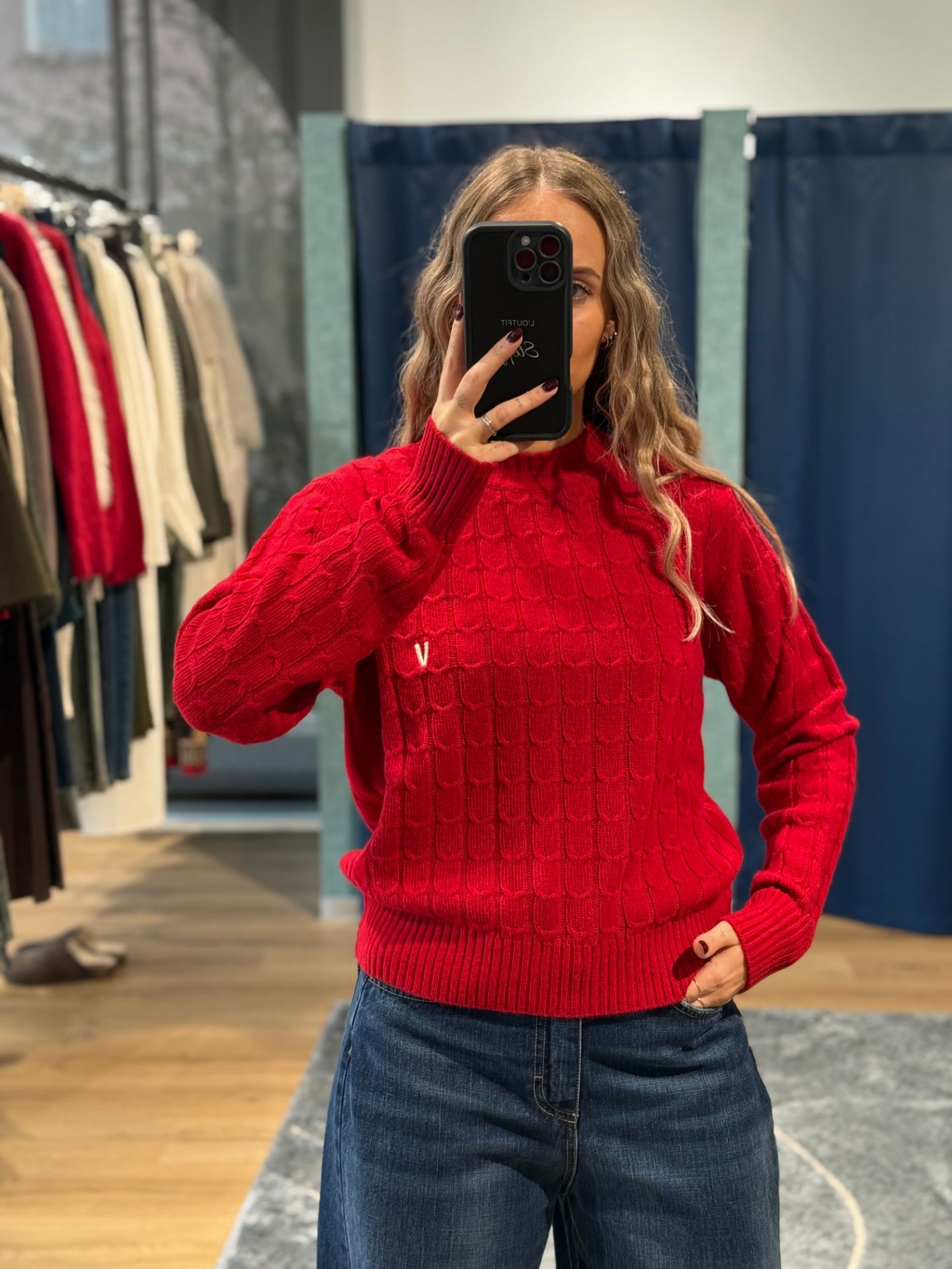 MAGLIONE TRECCE V - Disponibile in ROSSO, GRIGIO
