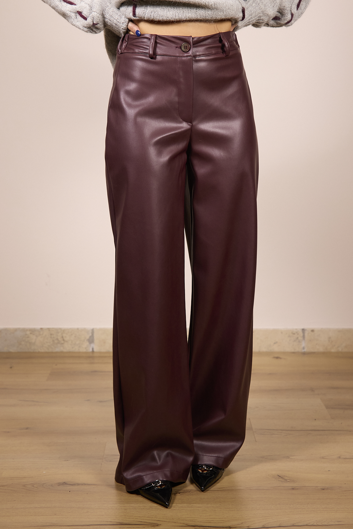 PANTALONE DRITTO SIMILPELLE - Disponibile in NERO, BORDEAUX